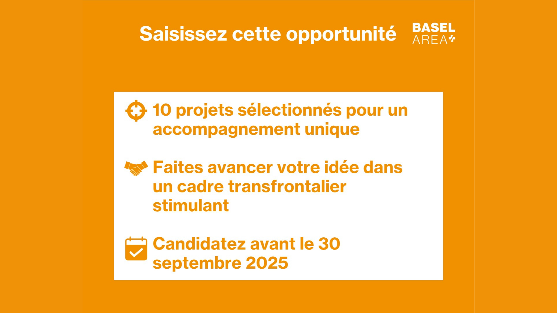 Seuls 10 projets seront sélectionnés pour bénéficier de cet accompagnement unique. Ne manquez pas cette opportunité de faire avancer votre projet dans un cadre transfrontalier stimulant.